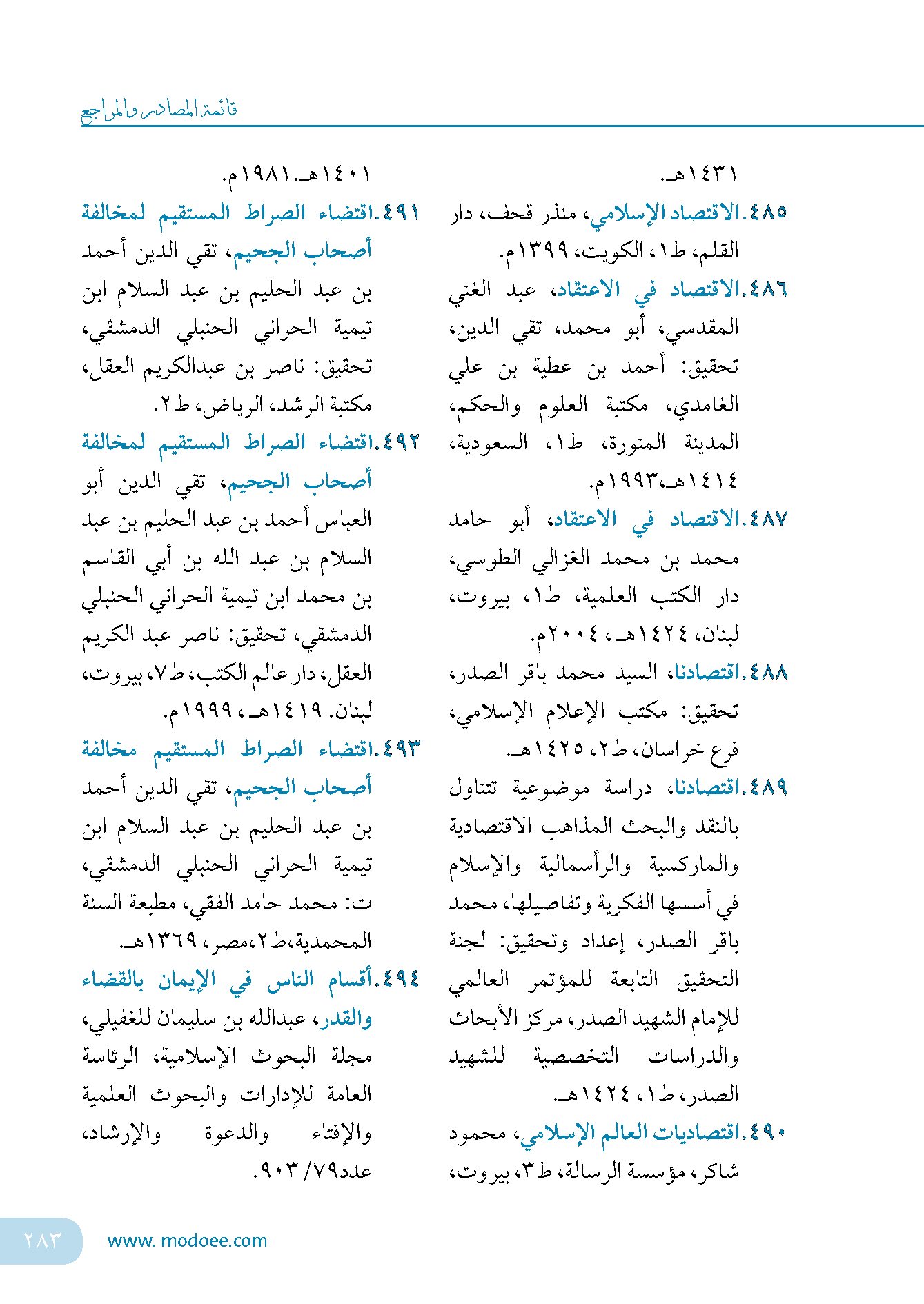قائمة المصادر والمراجع